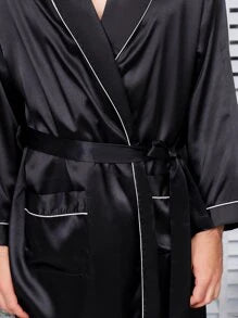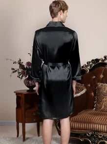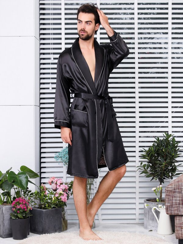 S22-12.1 Guys Contrast Binding Belted Satin Robe